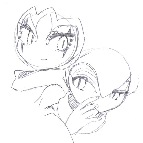 ナイツさんを描くときは、ものすごく男っぽい女の子を描くキモチで描いてます。男らしいニューハーフ美女を描くイメージ。一方リアラは本当どっちでもないです。そういう意味では、ナイツさんのほうがリアラより性的なかんじです(セクシーではなくジェンダーな意味で)。